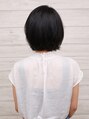 あごラインでカットしたショートボブスタイル。表面のみレイヤーを入れる事でナチュラルな外ハネやふわっとした軽い動きをプラス。働く大人女性に似合う暗めのブルージュカラーでワンランク上のオシャレを☆