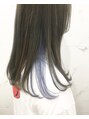 ブルーベースのグレージュにスカイブルーのインナーカラーを入れました。ベースがブルーで統一されているのでなじみがよく、チラッと見えるブルーがとてもおしゃれです!ベースのグレージュカラーは明るすぎず、透明感たっぷりの上品なカラーです。
