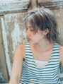 少し長めのショートに切り、髪に動きが出るようにレイヤーを入れました!少し長めのバングでセンターわけもサイドから流すのも◎カラーは明るめのグレージュに染めました!ウェットにしても透明感があり抜け感のあるスタイル!