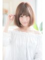 ベーシックなボブスタイル。輪郭を隠すようにワンカールで包み、前髪もラウンドさせて二重の小顔効果。重くなりがちだけど、ベージュ系のカラーで軽さと柔らかさを出して◎
