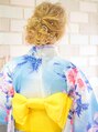 ルーズなゆるふあな浴衣似合うヘアアレンジ(シニオン低め)。注)浴衣着付けは出来るスタッフがいるときのみとなりますので、電話にてご確認お願い致します。