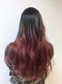 ブリーチでしっかり毛先を抜いてからダークレッドをオン♪