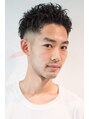 サイドバックをしっかり刈り上げて、トップは緩めにパーマして毛先を遊ばすスタイルです。