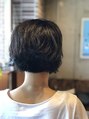 ベースカットはグラデーションボブ。直毛なのでパーマをかけて、柔らかい雰囲気に…ムースをつけるだけの、夏には最適、楽々スタイリングです。