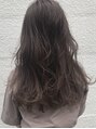 赤みの無いグレージュに薄っすらラベンダーをプラス。毛先にかけて明るくなるようにハイライトを入れています。