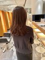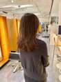 赤みの無いグレージュに薄っすらラベンダーをプラス。毛先にかけて明るくなるようにハイライトを入れています。