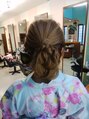 ルーズアップのシニヨンを縄編みと大きくつくったフィッシュボーンを崩して作ったスタイルです。適度に残したおくれ毛がとてもカワイイです。
