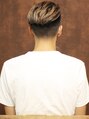 サイドを高めのツーブロックでスッキリさせ、トップと前髪を長めにしたスタイルです。パートをサイドにして落ちる髪がゆるく流れる様に毛流れを作る事でラフな雰囲気を作っています。カラーはアッシュで外国人の様な柔らかさを出しています。
