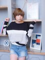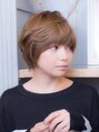 愛らしさのあるベビーショートに、厚めバングと、目の上ギリギリラインで小顔効果&目元強調!メルトカラーで外国人風のピュアな透明感を演出。