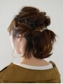 くるりんぱを重ねて作ったハーフアップアレンジ。短めの髪でも、手軽に雰囲気をチェンジすることができます。ベースはゆるく波巻きにして表情を出して。巻き髪が苦手な方は、パーマがオススメ。