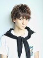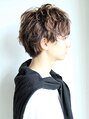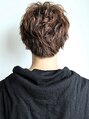 ショートレイヤーベースです。パーマによる躍動感とハネ感、長めの前髪が柔らかい印象を与えるスタイルです。パーマはトップは根元が立ちあがるようにかけ、それ以外はハネるように毛先中心にかけています。