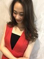 - 大人ベージュで透け感を出すのにハイライトを入れ、34ミリのコテで平巻きで仕上げています