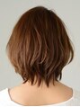 ひし形のシルエットで、どこから見ても360度綺麗なラインのミディアムヘア。カラーはツヤ感の出やすい落ち着いたトーンのマロンブラウンで、顔色もパッと明るく透明感のある雰囲気に。