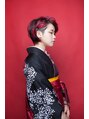 真っ赤な袴に合わせ髪を赤く染め、クールにモードな雰囲気を出しました。