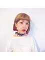 [prankster]切りっぱなしハイトーンボブに毛先真っ赤カラー