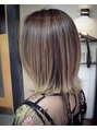 - 肩上パッツンボブ☆グラデーション&ハイライト☆パールグレイ☆エンジェルTRケアブリーチでダメージ軽減