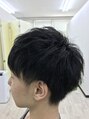 人気の高いサイドツーブロックで襟足を刈り上げたメンズスタイルです。生え癖で浮き上がりやすい部分をスッキリ切ってトップの動きが欲しい部分はランダムな量調整で柔らかさを出しました。