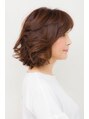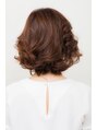 ミセスボブベーススタイル。華やかになるように顔周り・表面にはレイヤーを入れる前は透かしつつ前髪を作るカラーは明るめのベージュ・ブラウン