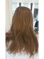 柔らかさが出にくい髪質でもカットで空気を含んだような雰囲気に仕立てたスタイル。外ハネとミックス巻きを組み合わせ、優しさと大人っぽい雰囲気も入手できる。