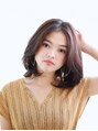 鎖骨ベースのひし形ミディアム。レイヤーで動きを出し量感は残す事で上質なイメージに。パーマで無造作なカールを作っておけばスタイリングが簡単になります。カラーは明度差が少なめのハイライトカラーグラデーション。立体感あるスタイルが際立ちます。