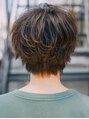 ネープつまめるくらいの長さでボリュームの位置を少し低めの位置にして、耳が少し出るショートレイヤースタイル!パーマで毛先全体をワンカール動きを出すことによりスタイリングが楽に!まっすぐから柔らかい印象に!なるのでオススメ。