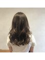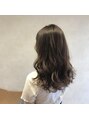 透明度の高いグレージュロングです。過去のブリーチ部分があることで実現したカラーです。巻き髪とストレートで変わる雰囲気を楽しんでほしいカラーです。