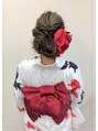 ロングスタイルならではのボリューム感!大きな髪飾りとのバランスを考え、ルーズ感も程よく出したスタイルです。リバーシブルなしの一色帯ですがヘアで大人っぽいので、三重ゴムを使って大人可愛いリボンアレンジです。