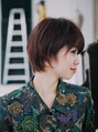 斜めにカットしたアシンメトリーな前がみがポイントのショートボブ。ラウンドでアシンメトリーにカットしているので柔らかく個性的になっています。いつものスタイルに変化をつけたい方や伸ばし中の方にもおすすめです☆