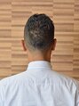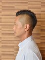 サイドの刈り上げは6mmです。あえてサイドはグラデーションで刈り上げず、遊び心で上まで刈り上げました。モデルさんの頭頂部は絶壁なので、グラデーションでボリュームが出るようにカットしました。