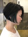 コンパクトなフォルムの前下がりボブに夏らしいインナーカラーがポイント!