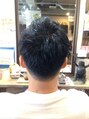 サイドは少し2ブロックぎみに、バックは自然とつながるように、刈り上げています。トップも動きがでるように。。。カラーは、元々11トーンぐらいの明るめ茶色の髪色だったところから、ブルーブラックを入れて、よりブラックヘアにしています☆