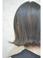 アゴ下で外に跳ねるボブスタイル。ファイバープレックスとブリーチを使ってアクセサリーからを入れています。髪の動きでアクセサリーカラーが見え隠れします。