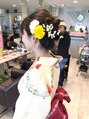 PL花火の浴衣の着付けとヘアセットをさせていただきました。ボリュームをできるだけ出さずに下の方でまとめて欲しいとのご要望でしたので 柔らかく落ち着いたイメージにさせていただきました。可愛くなって花火を見に行かれました。生花の髪飾りも綺麗です。