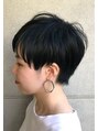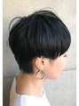 カットラインはしっかり残しつつレイヤーしっかり入れ軽さを出したショートスタイル。ブルーを深めに入れたネイビーカラーで大人っぽく黒髪とは違った印象に。