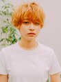 ネープギリギリのスッキリしたショートに、上からかぶせるように少し重ためのボリュームでカットしました!全体的にパーマでゆるくふんわりかけてから、カラーは14トーンのブラウンにオレンジを足して、暖かみのあるカラーにしました!