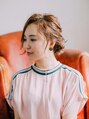 毛先をまとめたゆるっとシニオン♪ゆるっと可愛いのに大人っぽい雰囲気も崩さないエレガントなお呼ばれスタイルです◎
