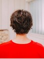 長めショートのパーマスタイルになります!パーマで無造作なスタイリングに、アップバングが大人っぽさを出しています。長めのレイヤーショートのベースカットに、大きめなカールでパーマをかけます。