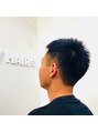 お子さんのカットも大歓迎です。コメカミから襟足にかけて大胆にかりあげ2ブロックに。アシンメトリー2ブロックは思いきりが大事!