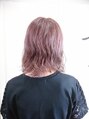 透明感あるベビーピンクにカラーしました☆ベースの髪色はブリーチをしているので、髪の色素も削られ、より透明感のある髪色に仕上がっています!!パーマもしてるので、仕上げはムースを使っています☆