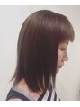 トリートメントストレートを全体に。肩のラインでカット。アッシュブラウンで染めピンクのポイントカラーを