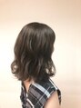 アベダカラーのアッシュ系カラーで、やわらかさと透明感を。ナチュラルなカール感のあるロブ スタイルで、大人な雰囲気に!伸ばしかけの方にもおすすめです。