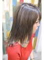 ミディアムの切りっぱなしボブにハイライトで動きを出し、ラベンダーアッシュで透明感カラースタイルです!