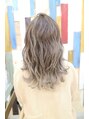 ミディアムレイヤースタイル+コテでひし形シルエットスタイル。ハイライトを全体に入れ透明感の強いハイトーンミルクティーベージュ!