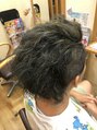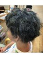 2色のアッシュ系をあわせショートスタイル、パーマで動きをつけて