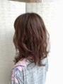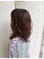 ペタンと寝てしまいボリュームが出にくい毛質なので、レイヤーを入れて動きがつきやすくしてあります。バームで軽くラフに仕上げてあります。