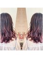 イルミナカラーを使ったパープル系の仕上がりです。ベース作りの段階でブリーチを使いグラデーションカラーに仕上げていきます。その状態からパープル系のもので明度、彩度を調整していきます!!和田