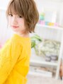 えりあし長めのショートスタイル。トップは軽くレイヤーを入れ、空気感をだしました。イエロー系カラーはカジュアルな雰囲気に合います。あえて片方耳にかけるだけで、軽さと動きをだしました。スタイリングが楽ちんなショートスタイルです。