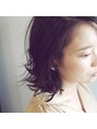 カラーは暗めのアッシュ。スタイリングを外ハネにする事でボブでも動きのあるスタイルになります。
