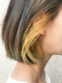 インナーをオレンジ感がなくなるまでブリーチ後、トップはシルバー、インナーをイエローで☆サイドから見た時や耳にかけた時にチラ見えします☆