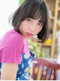 【スタイルは★ブックマーク★が便利】透け感シースルーバングでガーリーな雰囲気に。前下がりで輪郭カバーして小顔に仕上げたナチュラルボブ。ツヤカラーとレイヤーで動きを出し、重めスタイルに軽さとやわらかさをプラス。(メイク担当:北浦和店 棟方)
